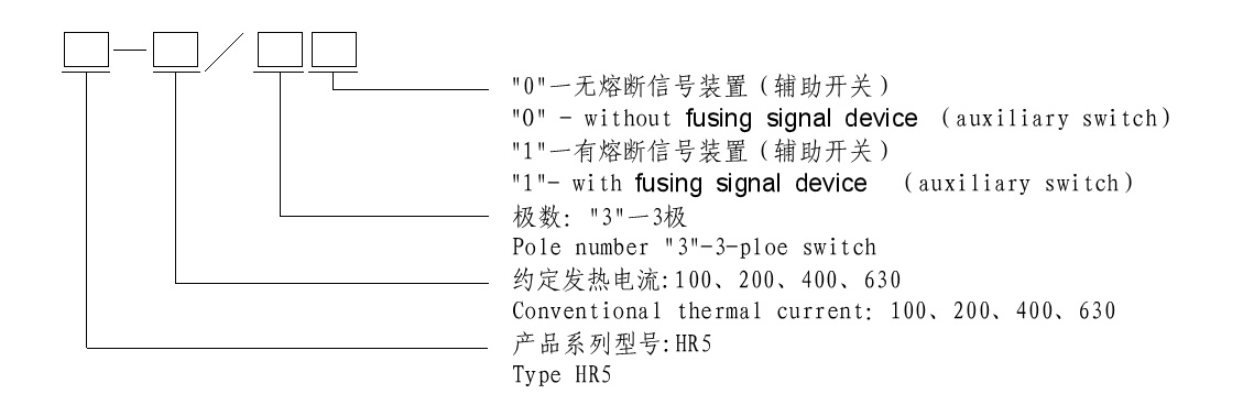 Series HR5 fuse-switch-disconnector with rated voltage up to 50Hz 380V and rated current up to 630A is applicable to the distribution circuit and motor circuits with high short-circuit currents as the power switch, switch-disconnector and emergency switch for protection purpose Generally it is not suitable for directly operating a single motor. HR5 fuse- switch-disconnector is composed of a triple-pole base, upper socket set with built-in arc chute, lower socket set and removable cover. The cover also functions as a handle and the fuse-links are fitted to its back. When replacing fuse-link, the cover can be removed from the base to avoid touching to live parts. The sheet springs on both sides of the base equip the switch with fast making breaking function.