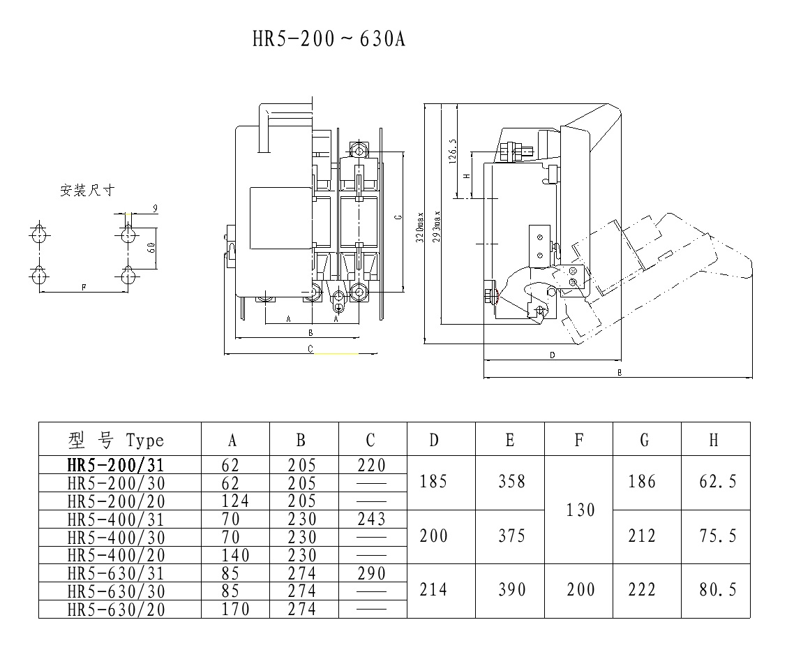 HR5系列熔断器式隔离开关,额定电压至交流380V,额定电流至 630A,适用于有高短路电流的配电电路和电动机电路中,作为手动不频繁操作的开关、隔离开关和应急开关,并作电路保护之用,但一般不适用直接开关单台电动机。