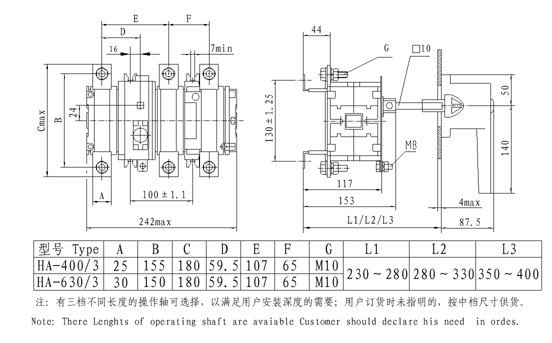 HA(QA)、HP(QP)系列隔离开关主要用于有高短路电流的配电 电路和电动机电路中,作为手动不频繁操作的开关、隔离开关和应急开关,并作电路保护之用。开关可直接开闭电动机等高电感负载,特别适用于抽屉式开关柜的成套装置中。